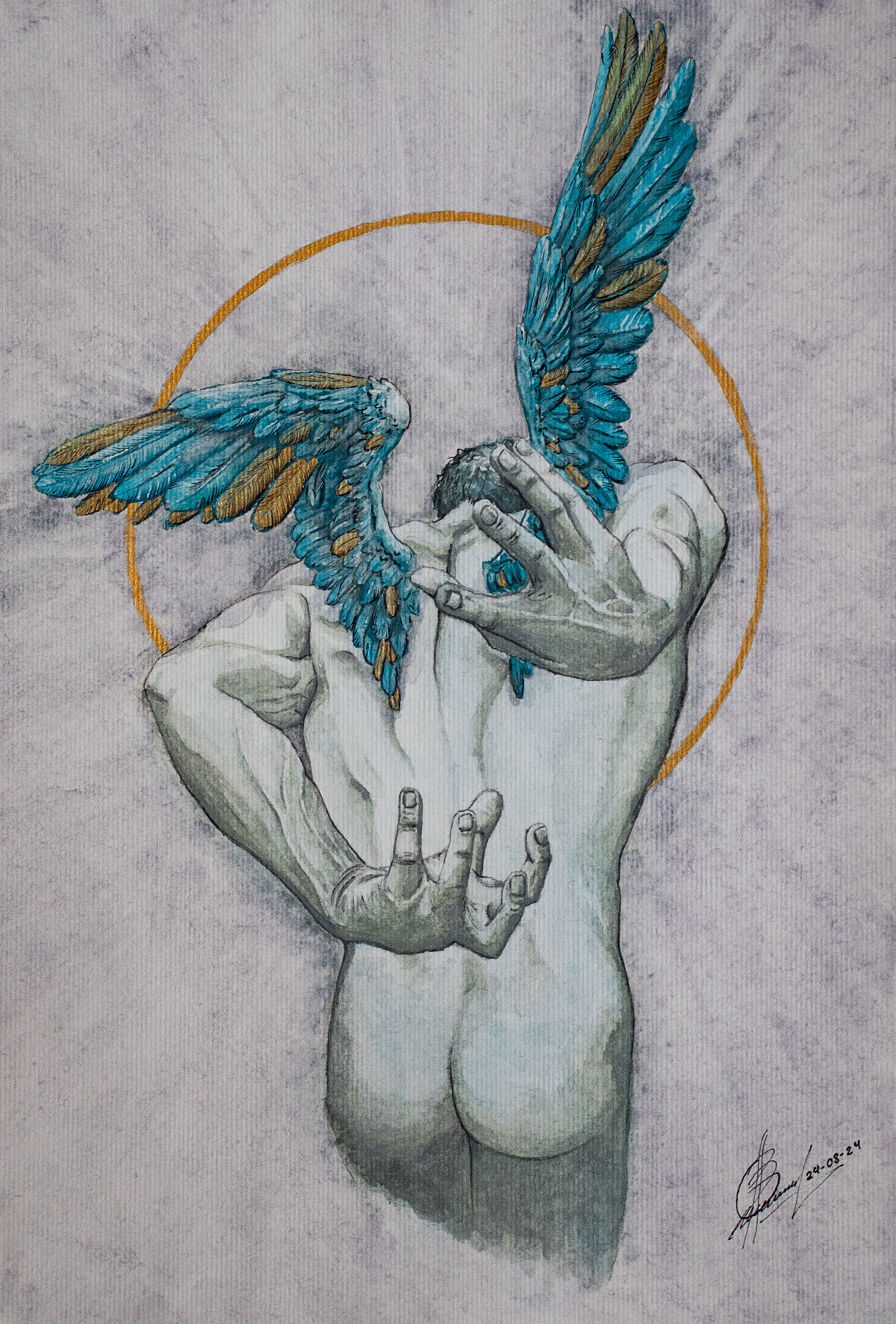 Testimonio autobiográfico, nada duele más que madurar y auotorrealizarse, un proceso común e inevitable. Acuarela sobre papel